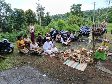 Sekaligus Pemelaspas dan Pengurip- urip Senderan Badan Jalan Usaha Tani Catur menuju SD N 5 Gesing di Banjar Dinas Waru, Desa Gesing.